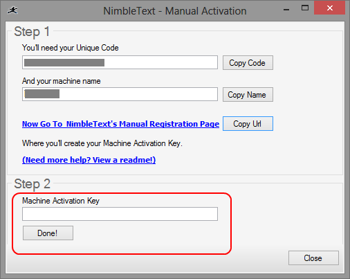 Use this form to register NimbleText for a machine that is not on the internet (or is on a restrictive network).